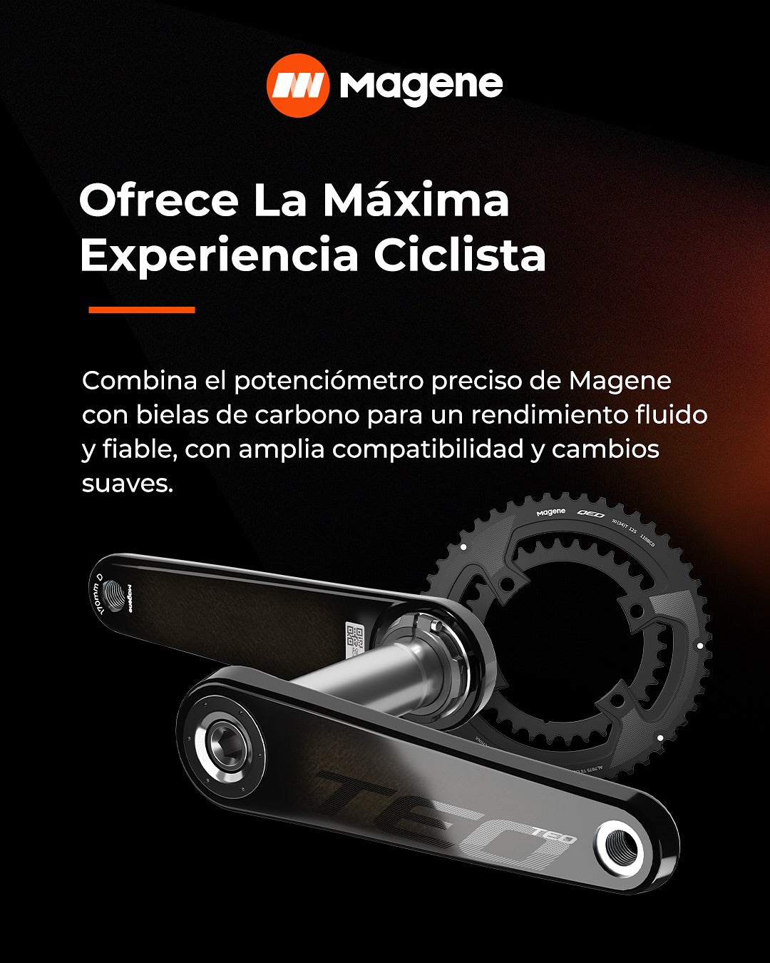 El TEO P515 combina unas bielas de carbono ultraligeras con el potenciómetro más avanzado de Magene.